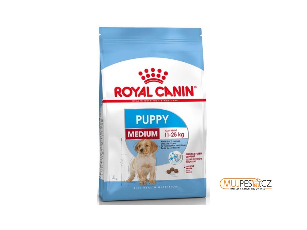 Kompletní krmivo pro psy - speciálně pro štěňata středních plemen (hmotnost v dospělosti 11 až 25 kg) - do 12 měsíců. Exkluzivní kombinace živin podporuje optimální trávení (obsah vysoce stravitelných proteinů) a vyrovnanou střevní mikroflóru (prebiotika, FOS, MOS), která přispívá ke správné konzistenci stolice.