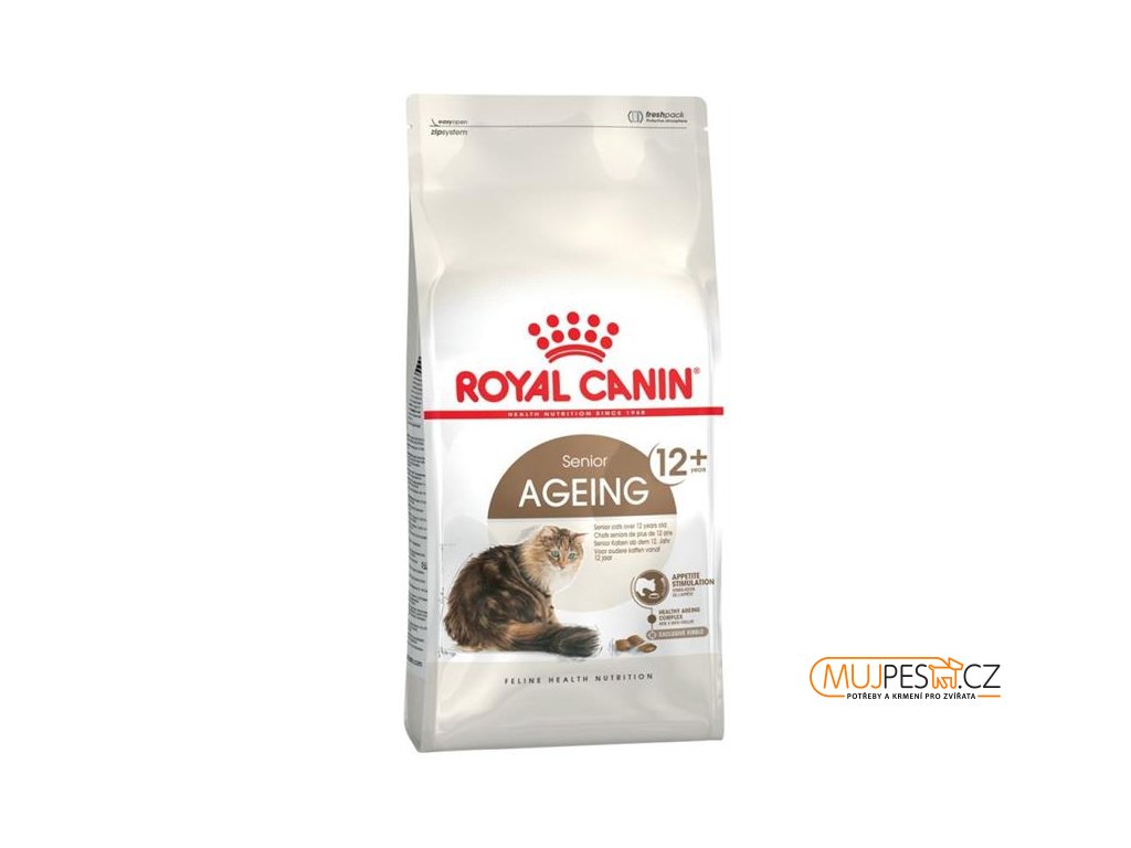 STIMULACE APETITU - U některých starších koček se s věkem zhoršují smysly, chuť a vůně, což vede ke snížení příjmu potravy a následnou ztrátu hmotnosti. Ageing 12+ pomáhá stimulovat chuť k jídlu díky vysoké stravitelnosti, dvojitá textura granulí, která se snadno žvýká.