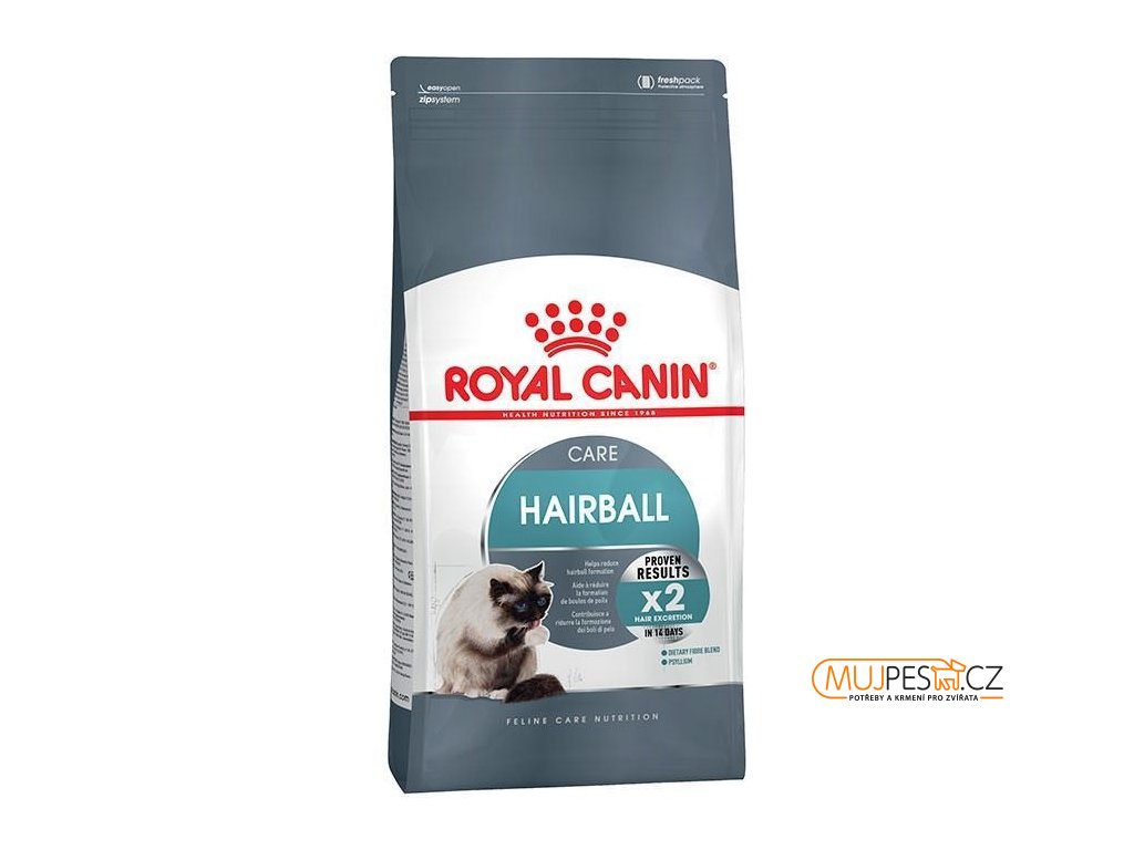 Krmivo výrazně podporuje vylučování požitých chlupů a omezuje tvorbu chomáčů srsti i u nejnáchylnějších koček. Posílená bezpečnost trávení prostřednictvím jedinečné kombinace složek (frukto-oligosacharidy, řepná dužina, rybí tuk, vysoce stravitelné bílkoviny a rýže).