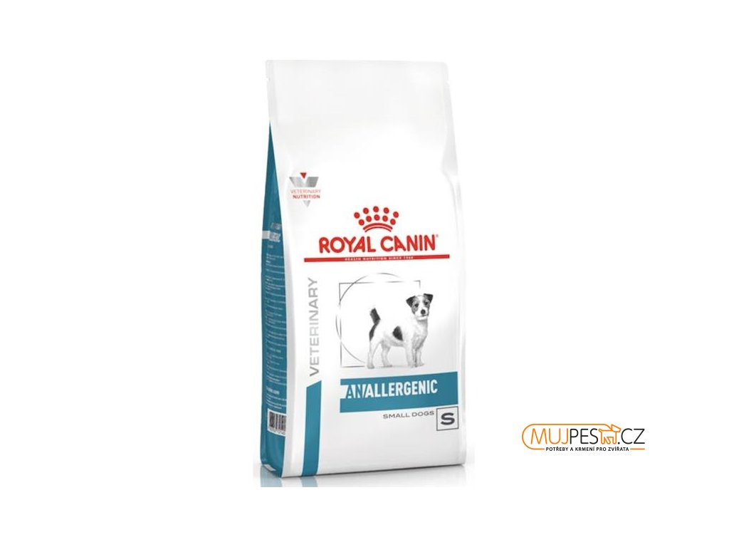 Royal Canin Veterinary Diet Dog Anallergenic Small Dog je speciálně vyvinuté suché krmivo určené pro psy malých plemen trpící potravinovými alergiemi nebo intolerancemi. Díky použití hydrolyzovaného proteinu z peří s nízkou molekulární hmotností a čistých aminokyselin minimalizuje riziko alergických reakcí. Krmivo podporuje zdraví kůže a trávicího traktu, přičemž jeho složení je přizpůsobeno specifickým potřebám malých psů – například velikostí granulí vhodnou pro jejich drobné čelisti.