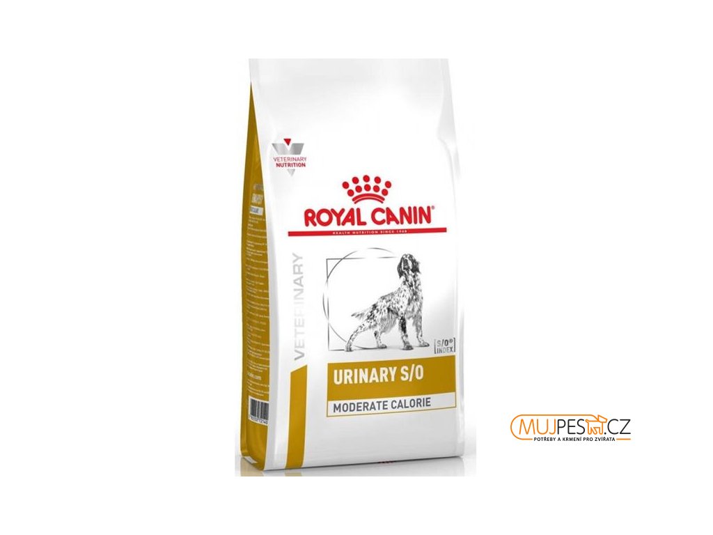 Psi často trpí onemocněním močových cest, které může vést ke zvýšené tvorbě močových kamenů. Dietní krmivo Royal Canin Urinary S/O Moderate Calorie bylo vyvinuto speciálně pro psí jedince trpící nejen záněty močového měchýře nebo výskytem močových kamenů, ale také nadváhou. Složení krmiva napomáhá při rozpouštění struvovitých kamenů. Jeho podávání doporučujeme též pro prevenci vzniku močových kamenů, zánětů močového měchýře a také nadváhy. Dalším pozitivním výsledkem podávání tohoto speciálního krmiva je zvýšený objem moči. RSS hodnota krmiva je nízká a dochází tak k redukci iontů, které zapříčiňují zvýšenou tvorbu močových kamenů.