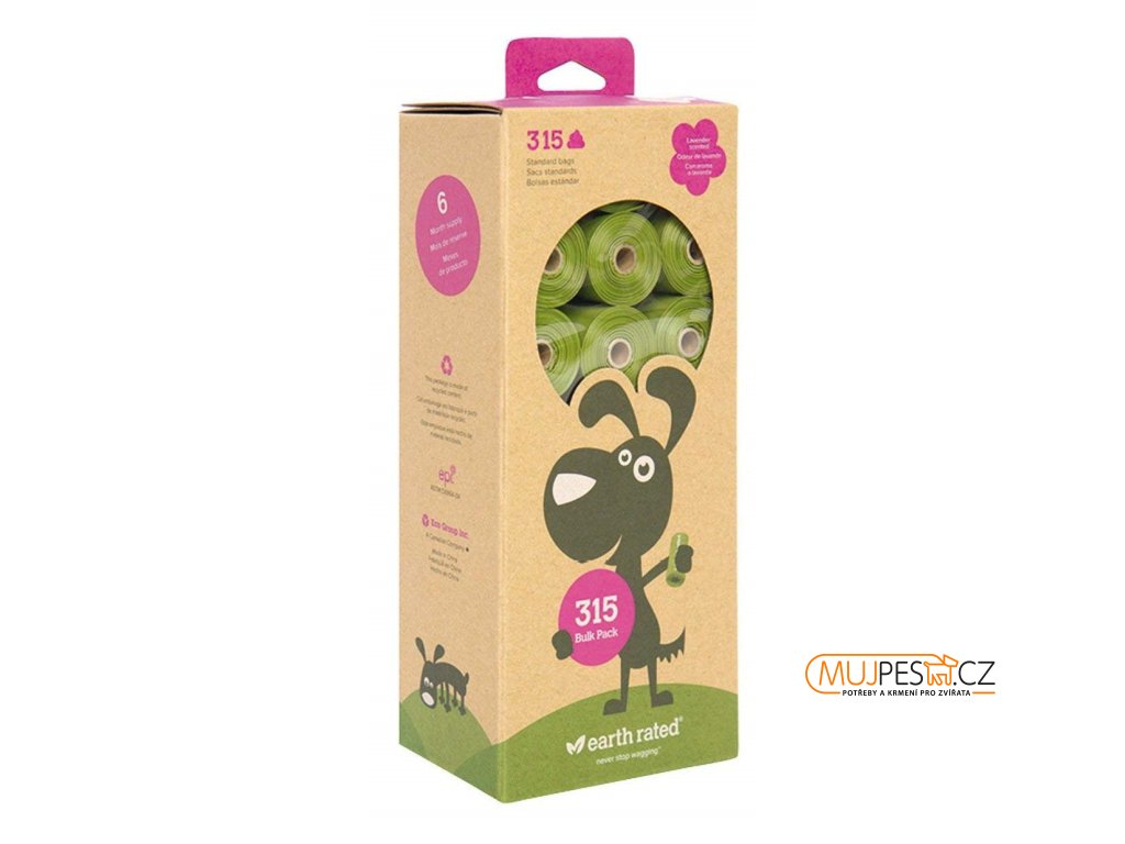 Sáčky na exkrementy s vůní levandule jsou šetrné k životnímu prostředí. Můžete je používat samostatně nebo se zásobníkem Earth Rated.