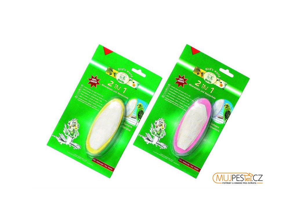 Složení: přírodní sépiová kost, vitamín B1, B6, síran zinečnatý, síran měďnatý, uhličitan sodný, jód, písek, skořápky mušlí, ovocné aroma.