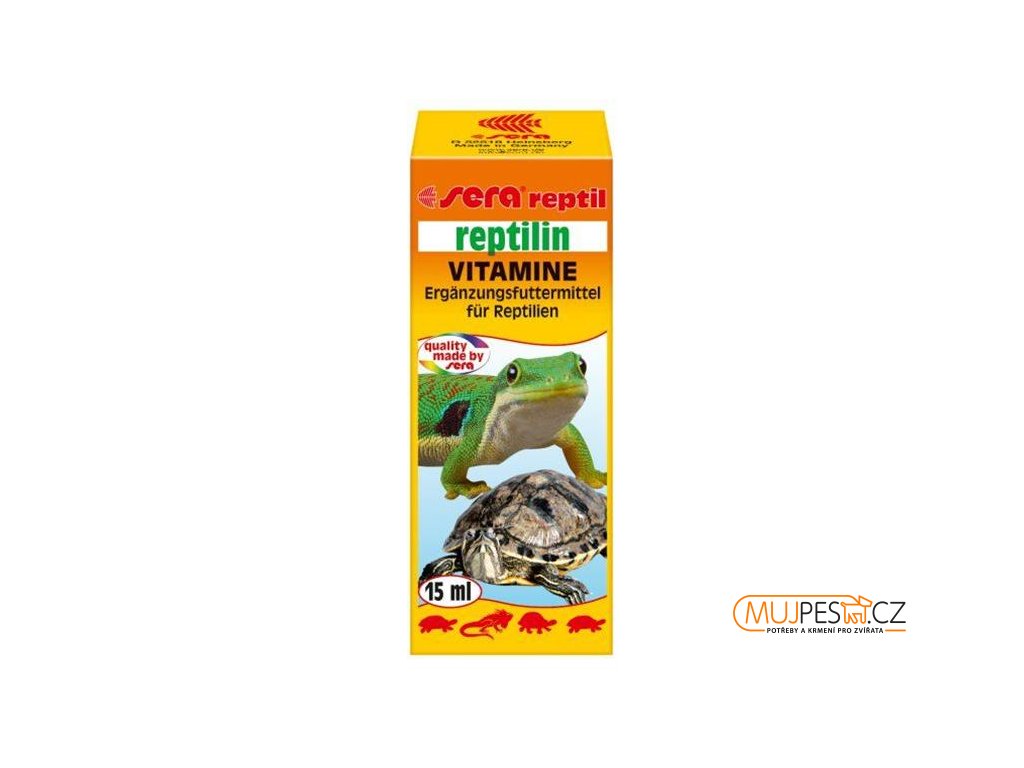 Multivitamín pro zdravý imunitní systém. Složení tohoto chutného multivitamínového preparátu splňuje vitamínové požadavky plazů a tudíž optimálně se přidává k denní porci krmiva. Plazy udržuje fit a předchází nedostatkům, které mohou vést k náchylnosti vůči infekcím, problémům s výměnou kůže, nebo růstové problémy s kostrou či krunýřem. Protože je tekutý, je Sera Reptilin vhodný pro obohacení čerstvé, živé nebo sušené potravy, nebo může být přidán přímo do pitné vody.