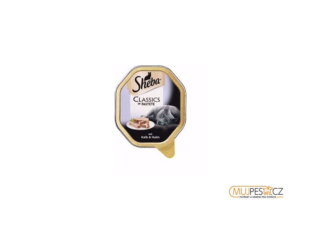 Paštika z telecího a kuřecího masíčka. Dobrota pro každičkou kočičku z vaniček značky Sheba.