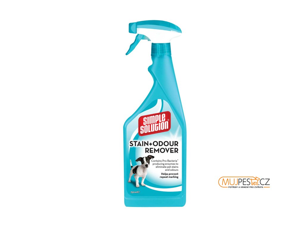 Stain & Odor Remover od Simple Solution se odlišuje tím, že se vyznačuje jedinečnou směsí Pro-Bakterií a Enzymů, které se aktivují až kontaktem se špínou nebo zápachem. Jeho efektivnost je prokázána právě tím, že až kontaktem se špínou se aktivují pro-bakterie produkující enzymy rozkládající organické látky, které úplně zničí nečistoty. Efektivnost tohoto procesu se prokáže hlavně při proteinech podobných lepidlu, které se nacházejí v moči. Správným odstraněním nečistot a pachu zabráníte například dalšímu značkování stejného místa.