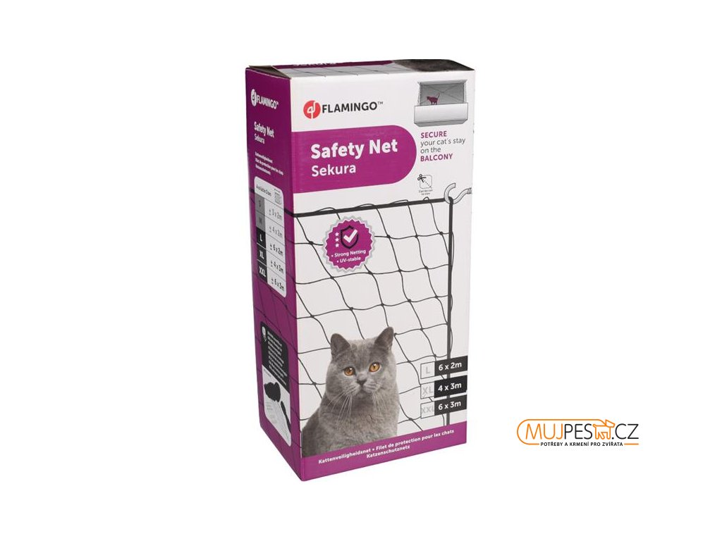Dopřejte své kočce svobodu při prozkoumávání bytu či venkovních prostor bez obav, že uteče nebo se zraní při pádu. Ochranná síť vytvoří bezpečný prostor z balkónu či terasy, zabezpečí otevřená okna či dveře apod. Síť je pevná, snadno se instaluje a velikost lze upravit ustřižením. Balení obsahuje kromě sítě také popruhy pro její napnutí a upevňovací systém (háčky s hmoždinkami). Síť je odolná vůči UV záření a povětrnostním vlivům.
