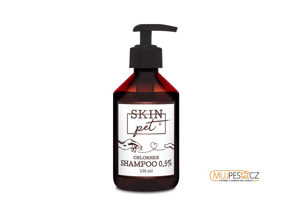 Veterinární přípravek SkinPET® Chlorhex Shampoo 0,5% je ideální volbou pro pravidelnou péči o pokožku a srst psů, koček a koní. Antiseptické látky snižují množství bakterií a kvasinek, které kolonizují kůži. Odstraňuje nečistoty, odumřelou tkáň, zaschlý hnis i krev – to vše je živnou půdou bakterií a plísní. Šampon napomáhá zklidnění podrážděné, citlivé a svědivé pokožky. Neobsahuje alergizující ani dráždivé látky, jako jsou například pěnivé složky. Neobsahuje ani silné a nepřirozené parfemace a další rizikové látky. Šampon SkinPET® obsahuje pouze přirozenou a jemnou vůni Green Tea. Díky šetrnému složení na pokožce neštípe a nedráždí ji.