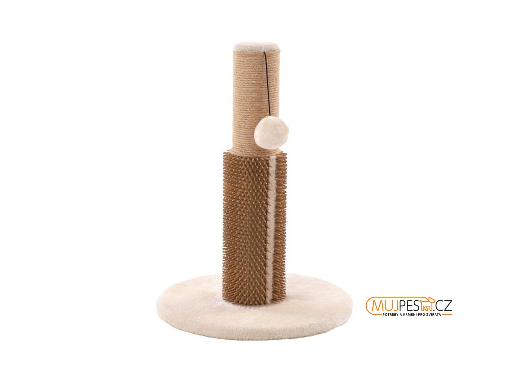 Škrabadlo menších rozměrů pro kočky má základnu potaženou měkkým plyšem, horní část sloupku opatřenou jutovým opletem na škrábání a dolní část gumovým kartáčem na drbání. Pro větší zábavu je k sloupku připevněn cinkající plyšový míček na provázku.