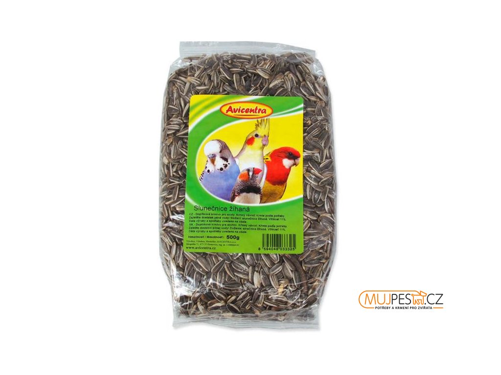 Doplňkové krmivo pro exoty a venkovní ptactvo. Žíhaná slunečnice s vysokým obsahem energie v zrnu.