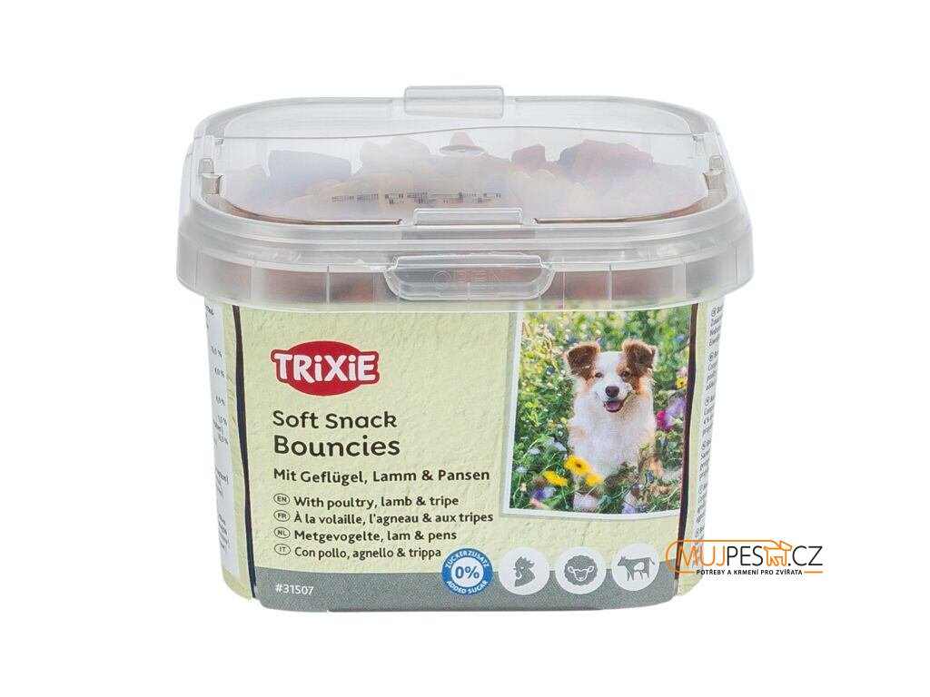 Soft Snack BOUNCIES mini kostičky kuřecí, jehněčí, dršťky 140 g