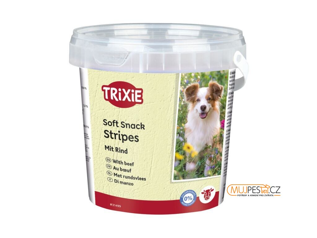 Soft Snack Happy Stripes - hovězí pásky, kyblík 500 g