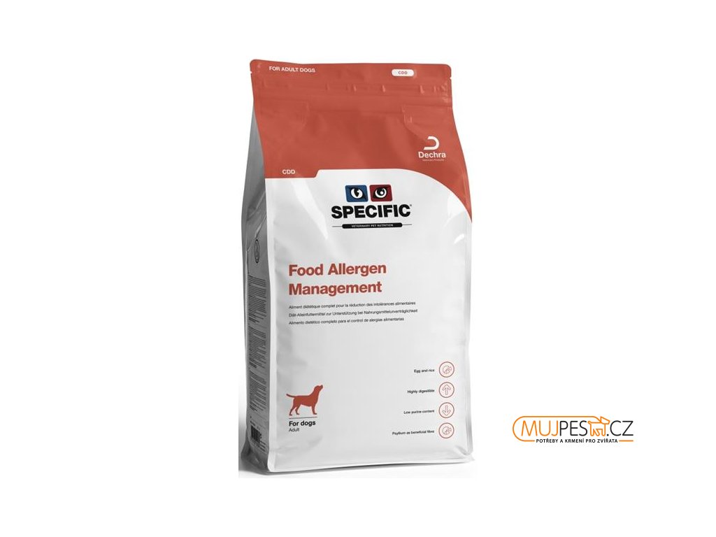- SPECIFIC™ CDD/CDW Food Allergy Management je kompletní a vyvážená hypoalergenní dieta s velmi omezeným surovinovým složením. Na rozdíl od domácích hypoalergenních diet je podávání diet komerčních pro majitele velmi pohodlné.