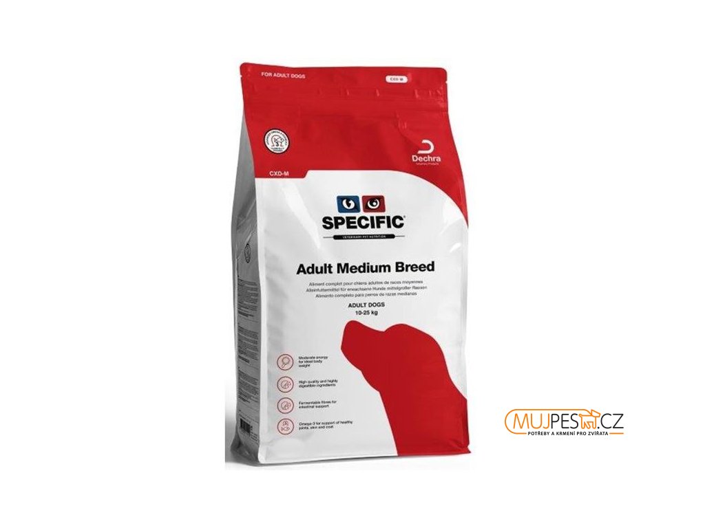 SPECIFICTM Adult Medium Breed je kompletní vyvážené krmivo pro dospělé psy středně velkých plemen (10 - 25 kg). Krmivo splňuje veškeré požadavky na výživu dospělých psů středně velkých plemen a přispívá k jejich zdraví.