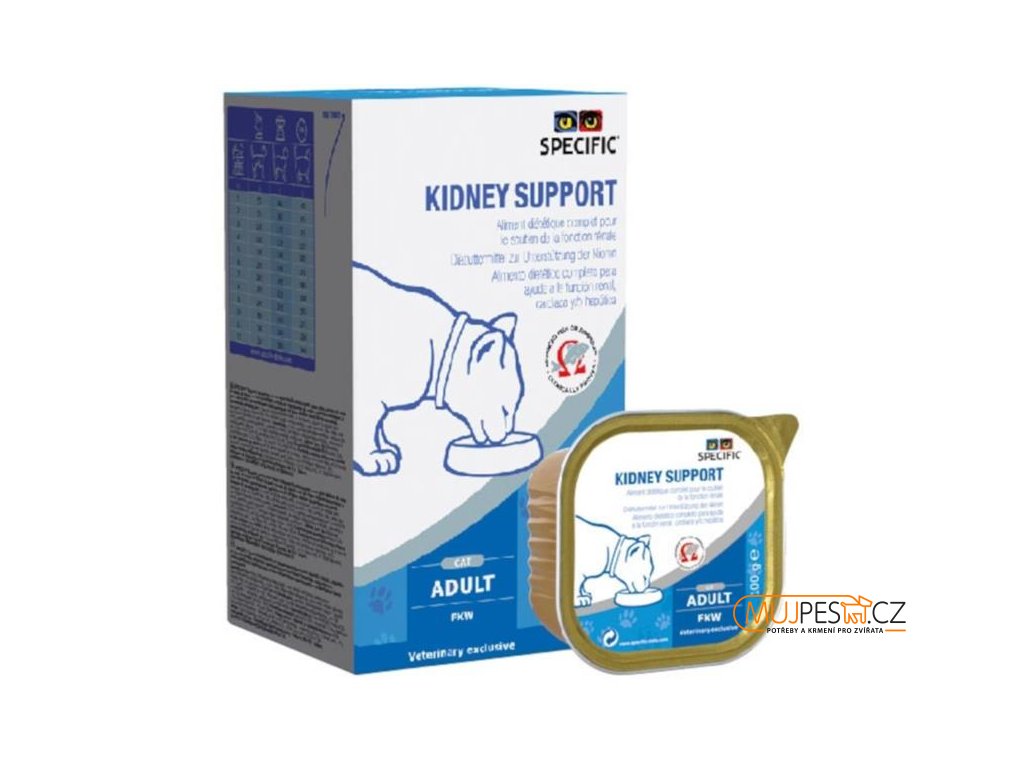 SPECIFIC™ FKD/FKW Kidney Support je vhodný pro kočky a psy s chronickým selháním ledvin nebo jater, srdečními problémy, edémy a močovými kameny různých typů.