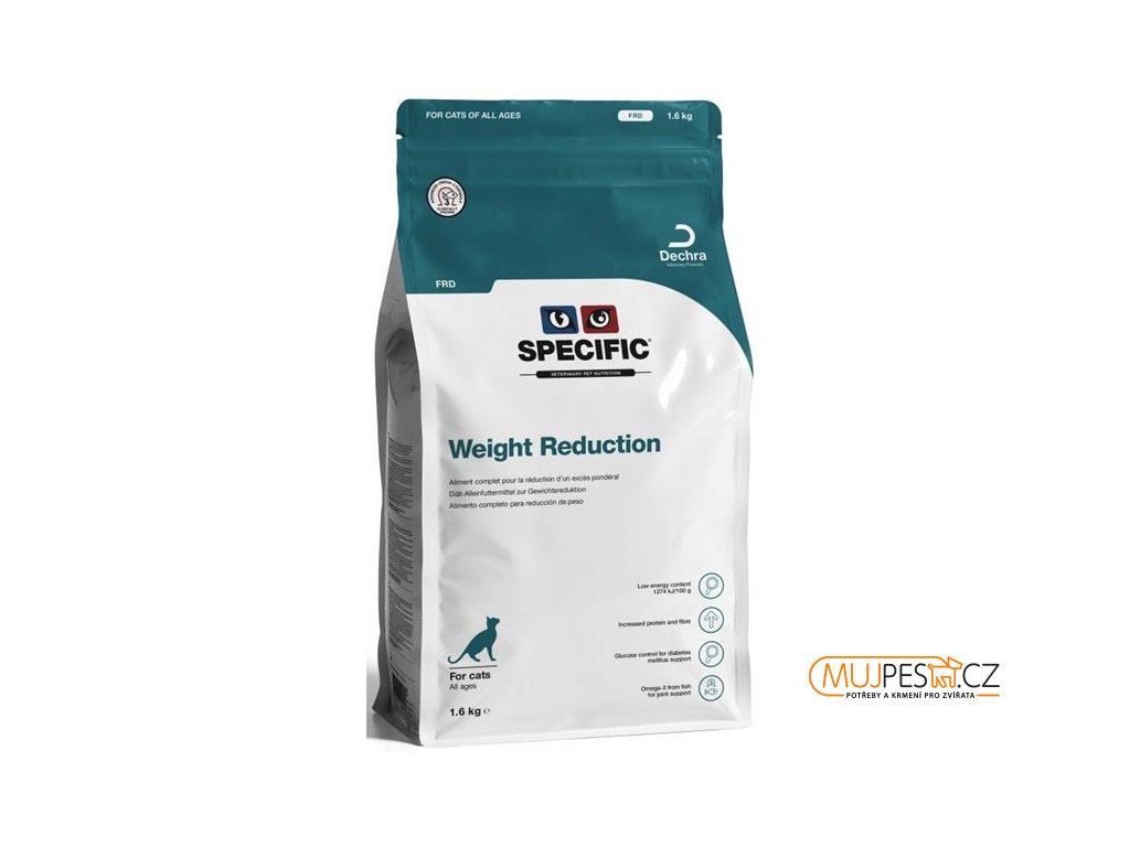 - Úspěch redukčního programu je podmíněn motivací majitele a zkrmováním pouze diety SPECIFIC™ FRD/FRW Weight Reduction. Je-li majitel zvyklý kočku odměňovat, měl by pro tento účel používat SPECIFIC™ FRW Weight Reduction.