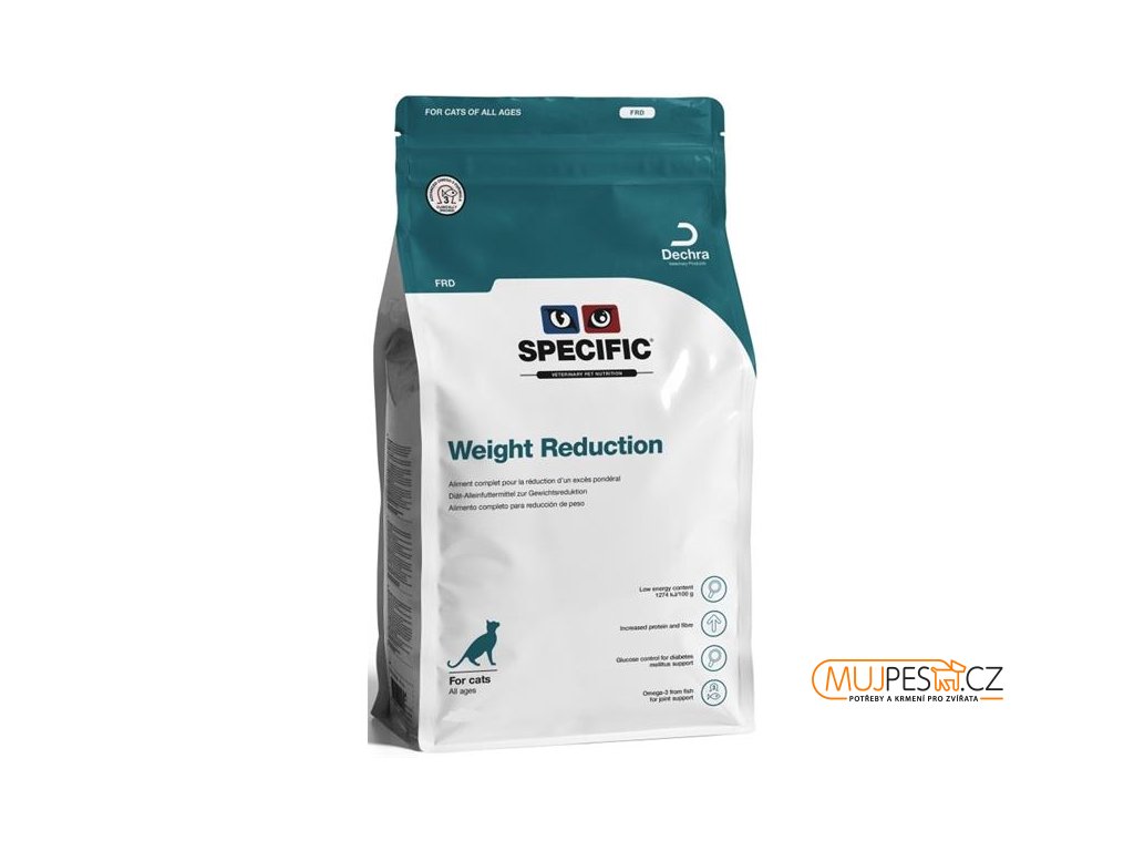 SPECIFIC® Weight Reduction je kompletní dietní krmivo pro snížení nadváhy a k regulaci příjmu glukózy (diabetes mellitus) u koček. Toto dietní krmivo má snížený obsah energie a monosacharidů a disacharidů. Kočkám s redukční dietou a diabetem dodává všechny potřebné živiny a přispívá k jejich zdraví.