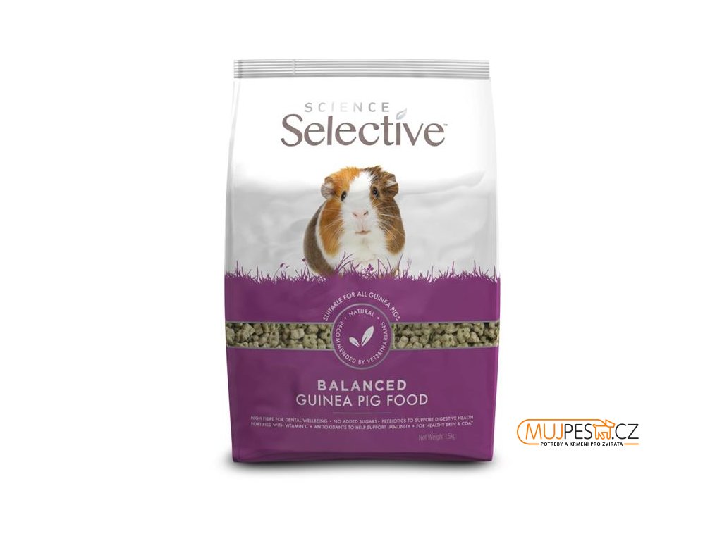 Supreme Science Selective Guinea Pig – morče je velice chutné, nutričně kompletní a vyvážené krmivo pro morčata v každém věku. Toto monokomponentní extrudované krmivo s identickými kousky ve tvaru kytiček zajišťuje, že si vaše morče nebude vybírat z krmiva své oblíbené kousky tak, jako to může dělat u nehomogenních krmných směsí. Zde máte jistotu, že morče z krmiva získá všechno, co může krmivo poskytnout pro její zdraví a pohodu.