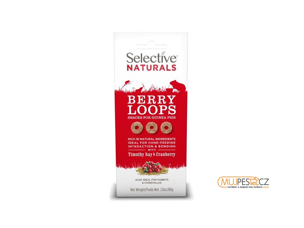 Zdravé přírodní pamlsky Selective Naturals ve tvaru kroužků pro morčata, králíky, činčily a další býložravé drobné savce. Ideální pro podávání z ruky, které sbližuje a pomáhá vytváření bližšího vztahu se zvířetem.