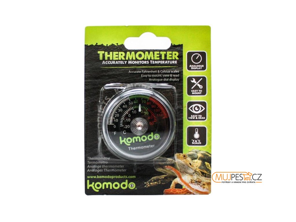 Sledování teploty v teráriu je nezbytné pro úspěšný chov jakéhokoli terarijního zvířete. Teploměr Komodo s analogovým displejem má vše, co k tomu potřebujete.