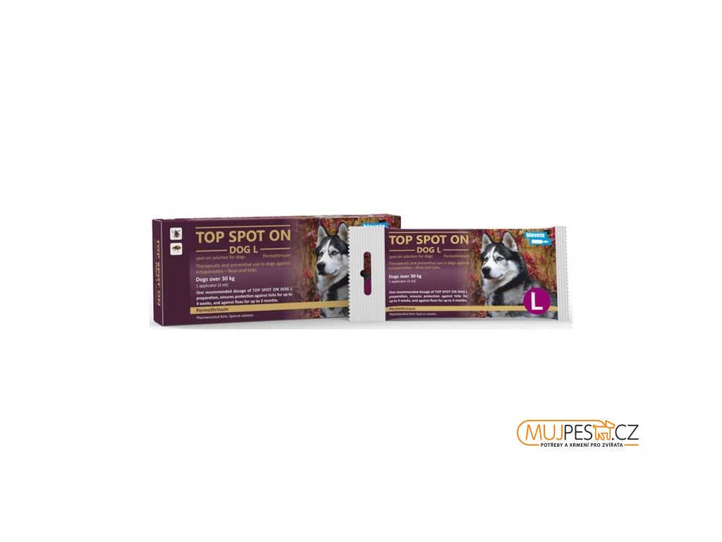 Způsob podání: velikost dávky pro jednoho psa je stanovena podle živé hmotnosti jedince. Před aplikací přípravku TOP SPOT ON STRONGER sol Dog se odstřihne špička aplikátoru, rozhrne se srst psa a přípravek se nanáší přímo na povrch kůže zvířete v místech určených pro aplikaci přípravku.