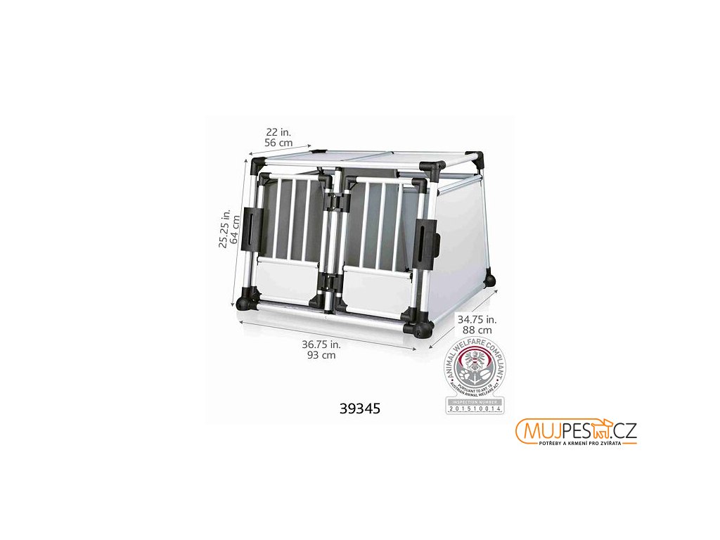 Transportní klec dvojitá, hliníkový rám, pevné panely 95x69x88 cm