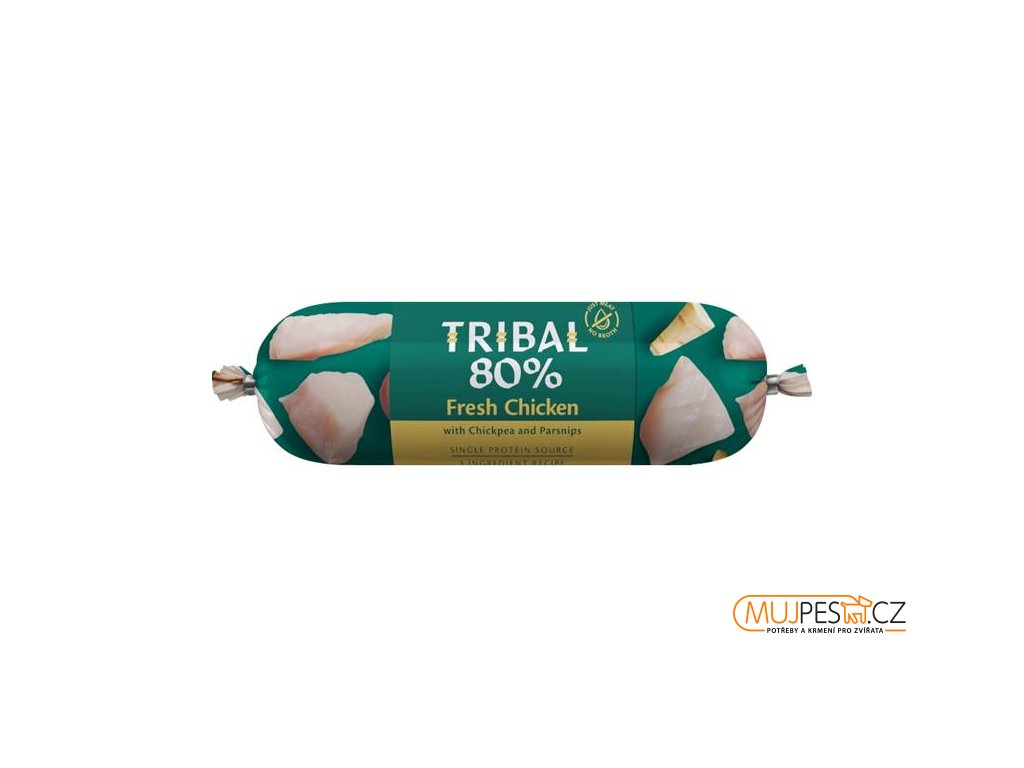Toto kompletní mokré bezobilné monoproteinové krmivo pro psy obsahuje 80 % živočišných bílkovin. Receptura sestává z pouhých 3 ingrediencí: 80 % masa z jednoho zdroje + cizrna + pastinák. Díky jednoduchému složení jsou salámy Tribal 80 % vhodné i pro nejcitlivější a nejvybíravější psy a jsou ideálním doplňkem ke krmivům Tribal Fresh Pressed.