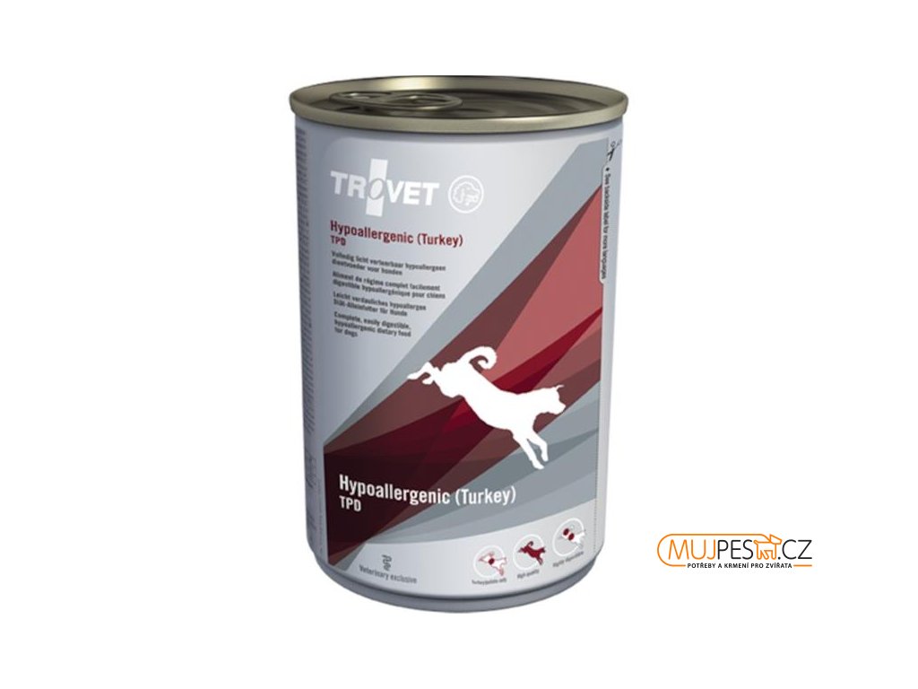 Konzerva Trovet Canine TPD Hypoallergenic (Turkey) je kompletní hypoalergenní krmivo pro psy s potravní přecitlivělostí. Jediným zdrojem bílkovin je v ní krůtí maso a jediným zdrojem sacharidů brambory.