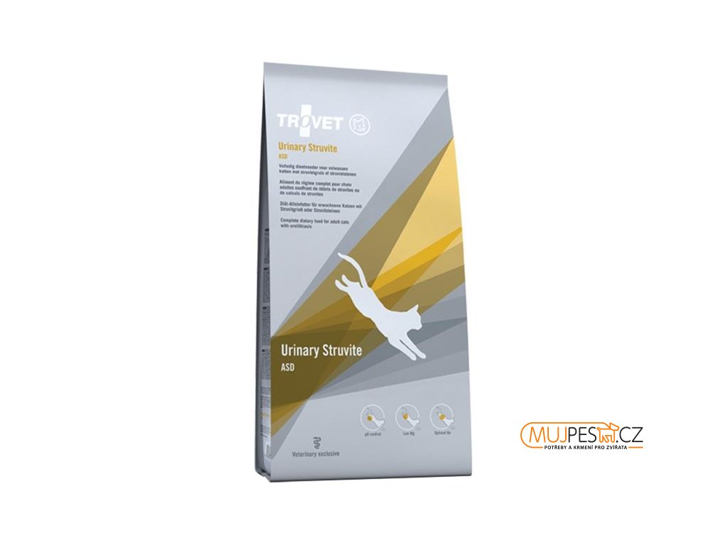 Krmivo Trovet receptura ASD je speciální dieta pro kočky, kterým pomáhá udržovat moč na správné úrovni kyselosti (pH 6 – 6,4). Tímto způsobem minimalizuje tvorbu močových krystalů a struvitů. Tato dieta je určena pro kočky, které mají problémy s močovým traktem, jako je felinní urologický syndrom a struvitové urolitiázy.
