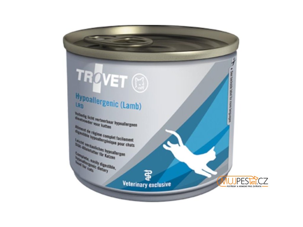 Konzerva Trovet Feline LRD Hypoallergenic (Lamb) je kompletní hypoalergenní lehce stravitelné dietní krmivo pro kočky s potravní přecitlivělostí. Jediným zdrojem živočišných bílkovin je v něm jehněčí maso a jediným zdrojem sacharidů rýže.