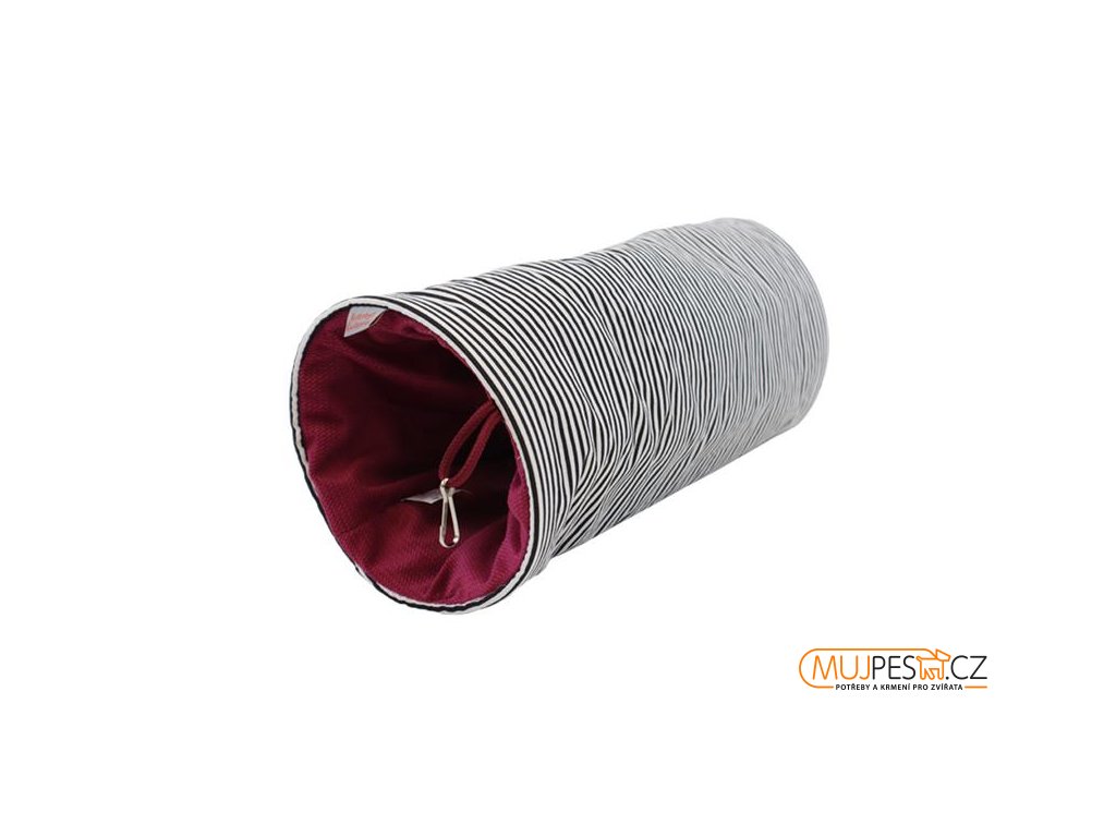 Tunel dr.savec závěsný L, černobílé proužky, tm.růžový velvet 15x15x40cm