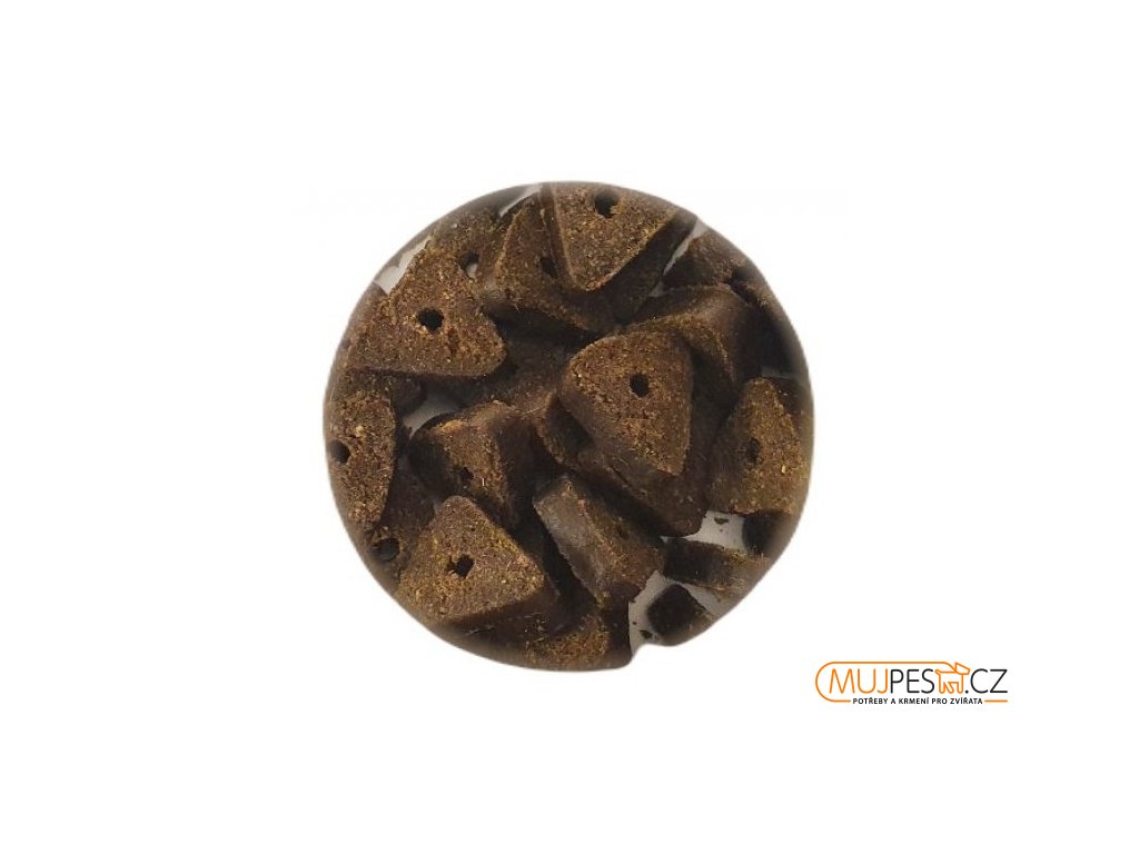 Pamlsek plný hypoalergenní bílkoviny. Jen jehně a moučný červ. Krásně se psům polyká, lehce láme.