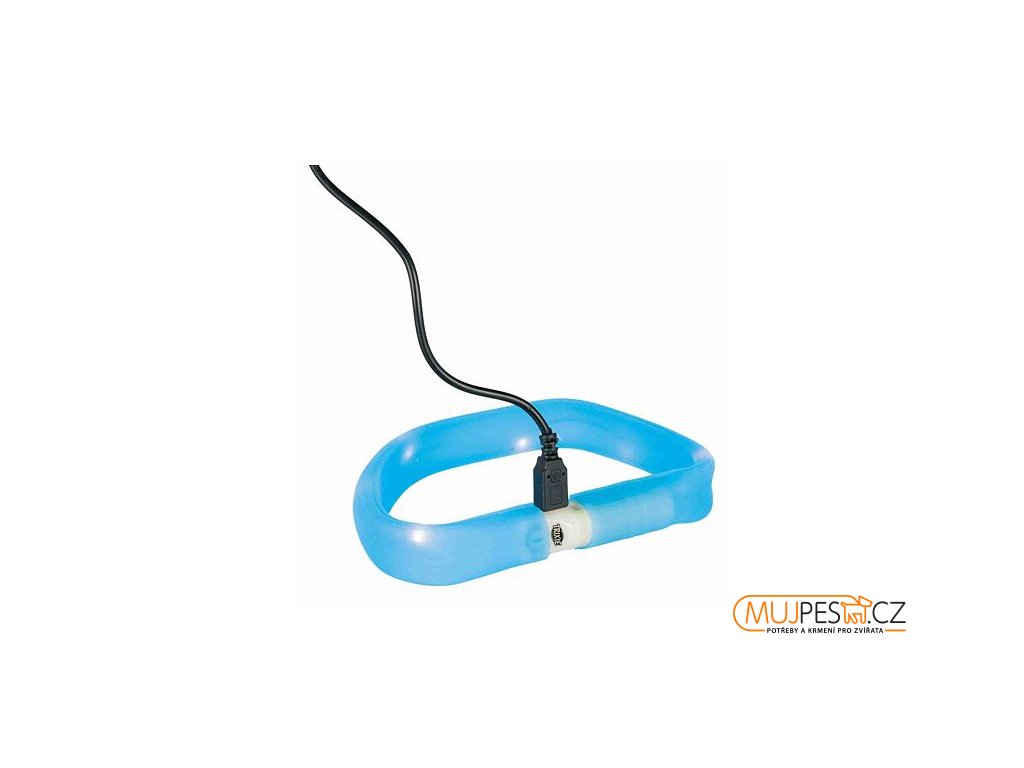 USB svítící obojek PLOCHÝ L-XL 70cm/30 mm modrý