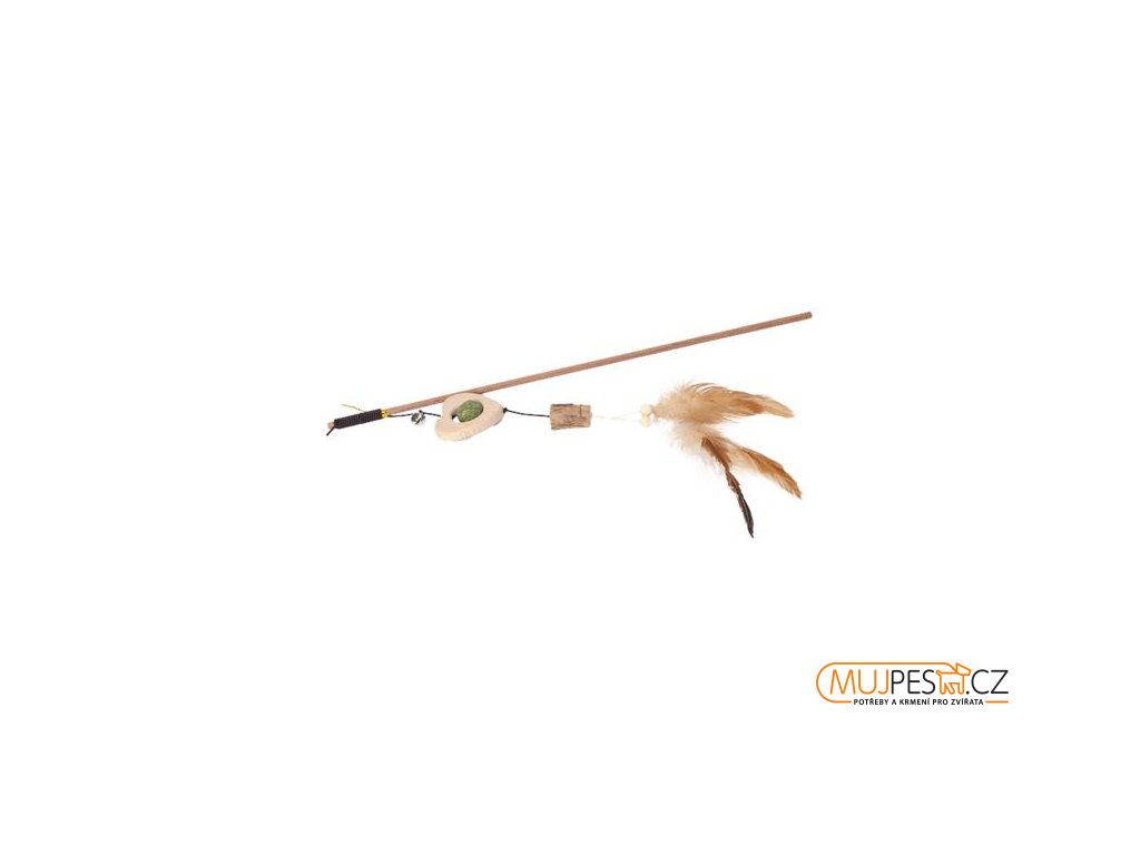 Vábnička s dřevěnou rukojetí láká ke hře závěsem, na němž je připevněná rolnička, dřevěné srdíčko s catnipovou kuličkou, korek a peříčka. Hračka stimuluje lovecké instinkty a posiluje pouto mezi vámi a vaší kočkou při společné, interaktivní hře. Je vhodná pro kočky všech věkových kategorií.