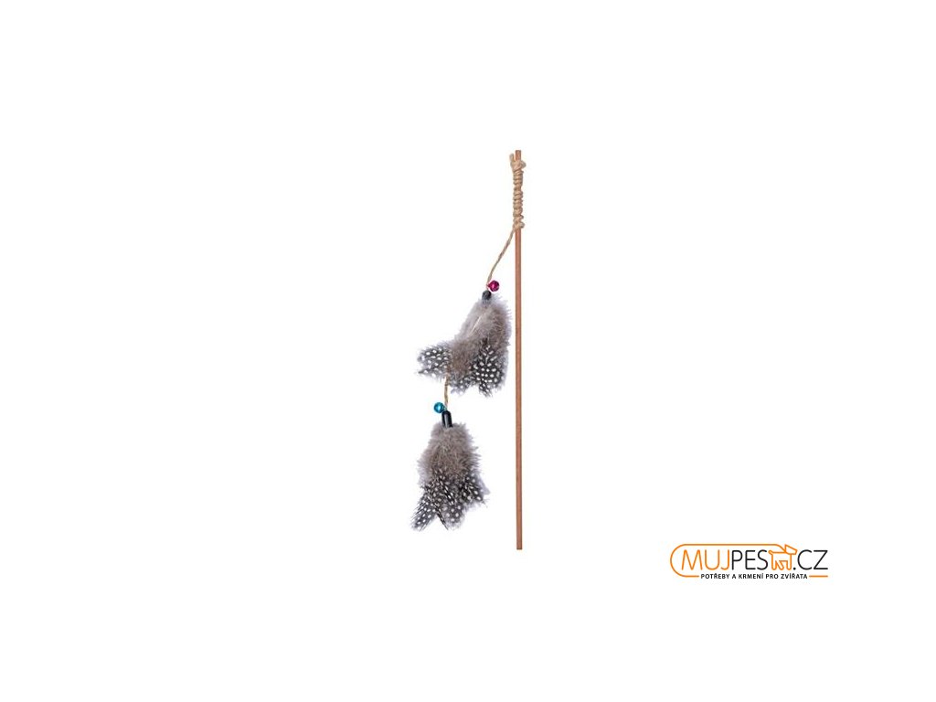 Vábnička s rukojetí z odolného dřeva sapeli má na provázku připevněné dva svazky peříček, z nichž každý je ozvučený rolničkou. Hračka stimuluje lovecké instinkty a posiluje pouto mezi vámi a vaší kočkou při společné, interaktivní hře. Je vhodná pro kočky všech věkových kategorií.