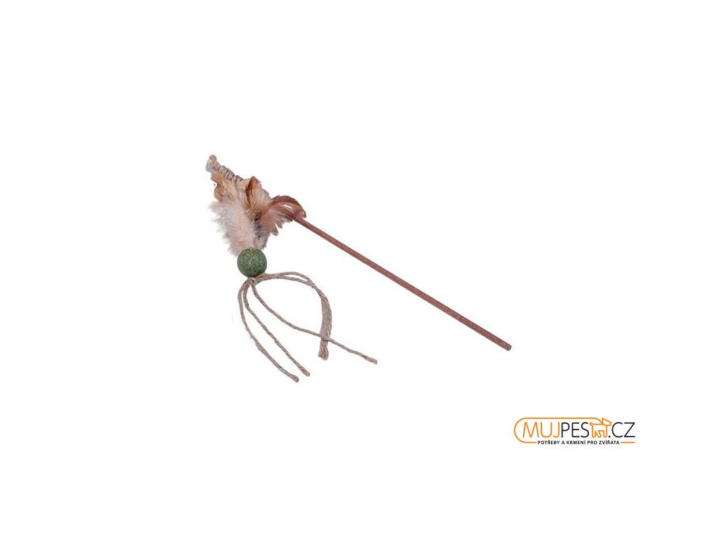 Vábnička s rukojetí z odolného dřeva sapeli má závěs s peříčky, kuličkou z lisované šanty kočičí (catnipu) a provázkovými třásněmi. Hračka stimuluje lovecké instinkty a posiluje pouto mezi vámi a vaší kočkou při společné, interaktivní hře. Je vyrobena z bezpečných přírodních materiálů a vhodná pro kočky všech věkových kategorií.