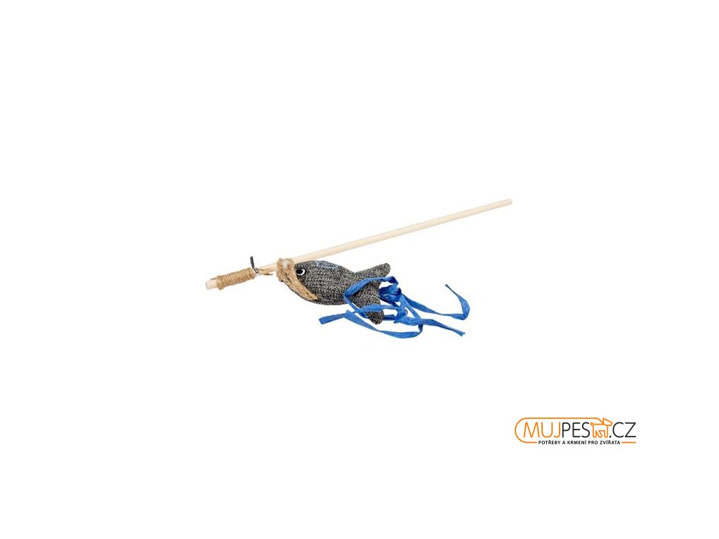 Ekologická vábnička s přívěskem ve tvaru ryby na elastické šňůrce uspokojuje přirozený lovecký instinkt kočky a motivuje ji k aktivní hře. 50 % látky a 100 % výplně je vyrobeno z recyklovaných plastových lahví. Hračka obsahuje přírodní catnip (šanta kočičí) – přírodní, nenávykovou bylinu, jejíž vůně přitahuje až 70 % koček.