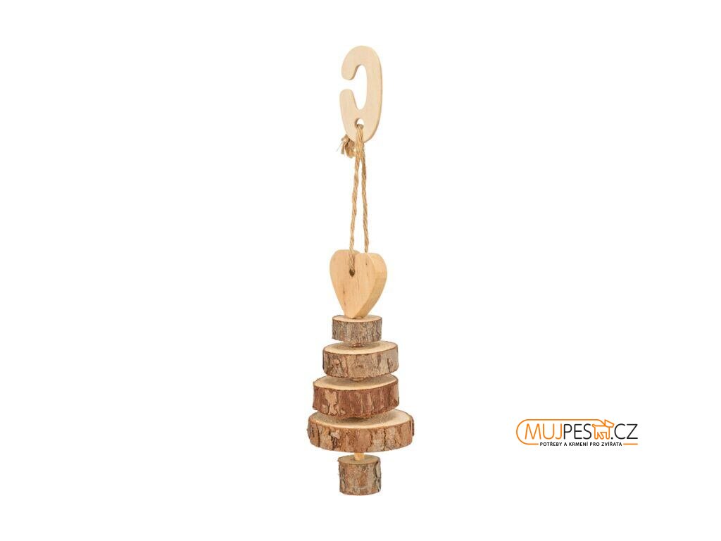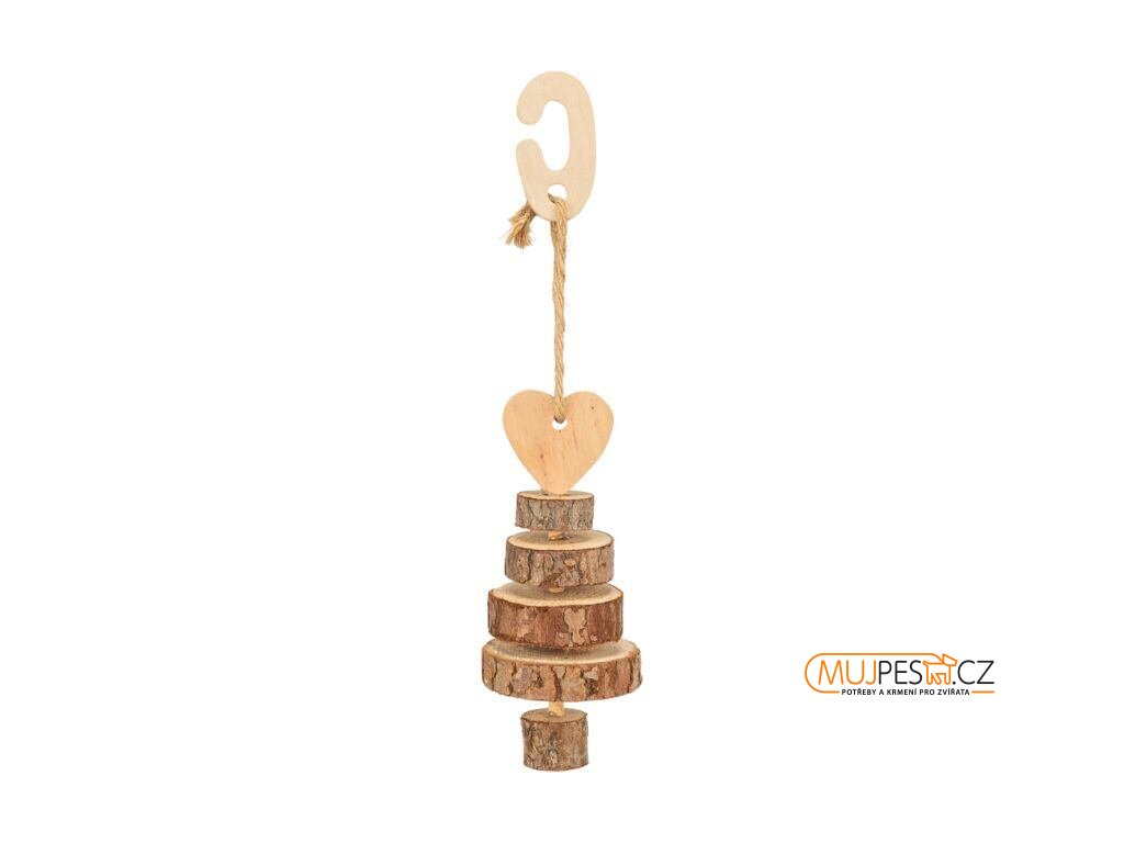 Vánoční okusovací stromek k zavěšení, ø 7 × 28 cm, dřevo/sisal