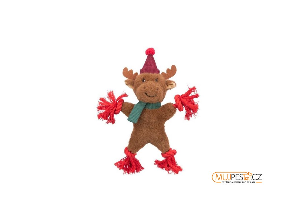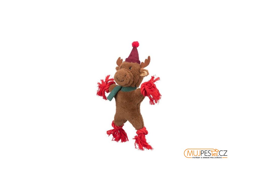 Vánoční sob 32 cm, píská/šustí, plyš/lano