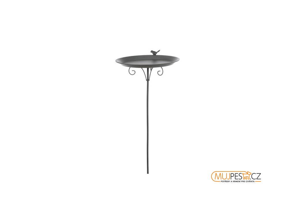 Venkovní pítko - miska na tyči, 1,8 l/ø 35 cm, kov, šedá
