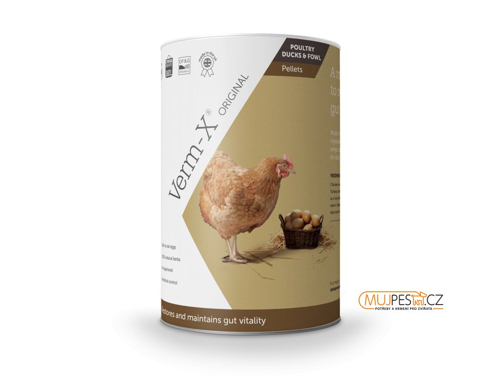 Produkt Verm-X Original pelety pro drůbež proti střevním parazitům byl vyvinut tak, aby ho chovatelé drůbeži přidávali v menším množství do potravy. Dávkuje se v měsíčních intervalech v rozmezí třech po sobě následujících dnech. Pelety mohou být podávány spolu s pravidelnými dávkami potravy. Výhodou 100% přírodního složení je, že chovatelé mohou konzumovat vejce v průběhu dávkování a nevystavují se žádnému zdravotnímu riziku.