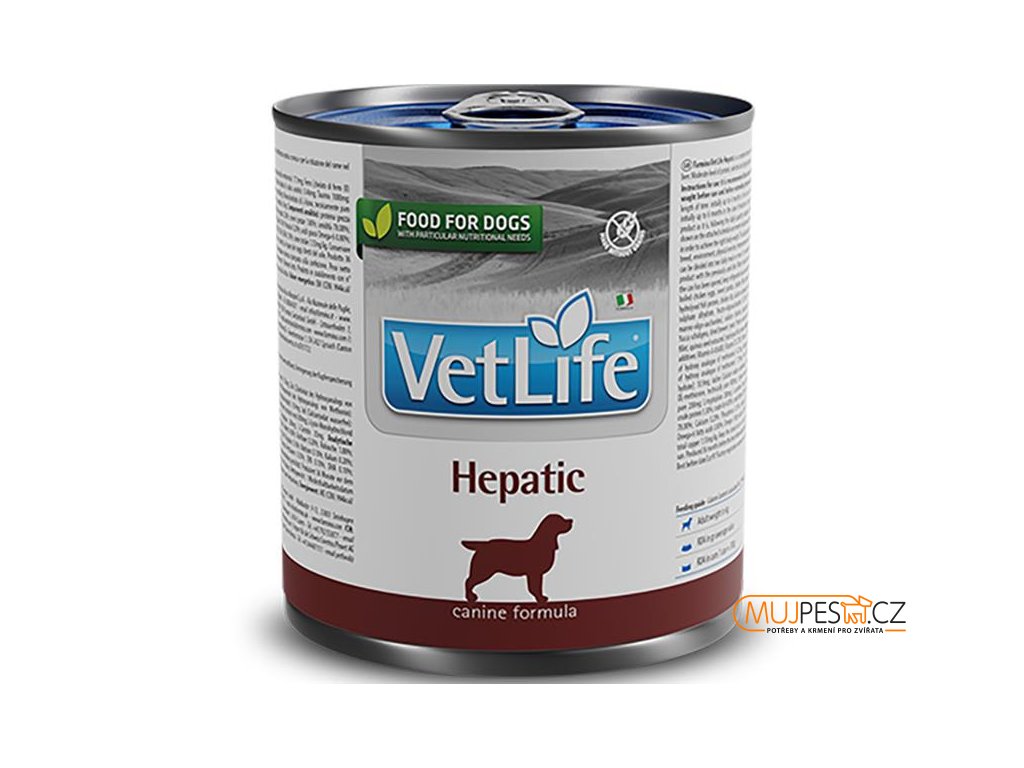 Farmina Vet Life Hepatic je kompletní vlhké dietetické krmivo pro psy vyvinuté speciálně pro podporu jaterních funkcí v případě chronické jaterní nedostatečnosti a v případě potřeby redukce množství mědi v játrech. Konzerva obsahuje vhodné množství pečlivě vybraných a vysoce stravitelných proteinů (vařená vejce, kuřecí filet, semínka quinoy a hydrolyzovaný rybí protein).