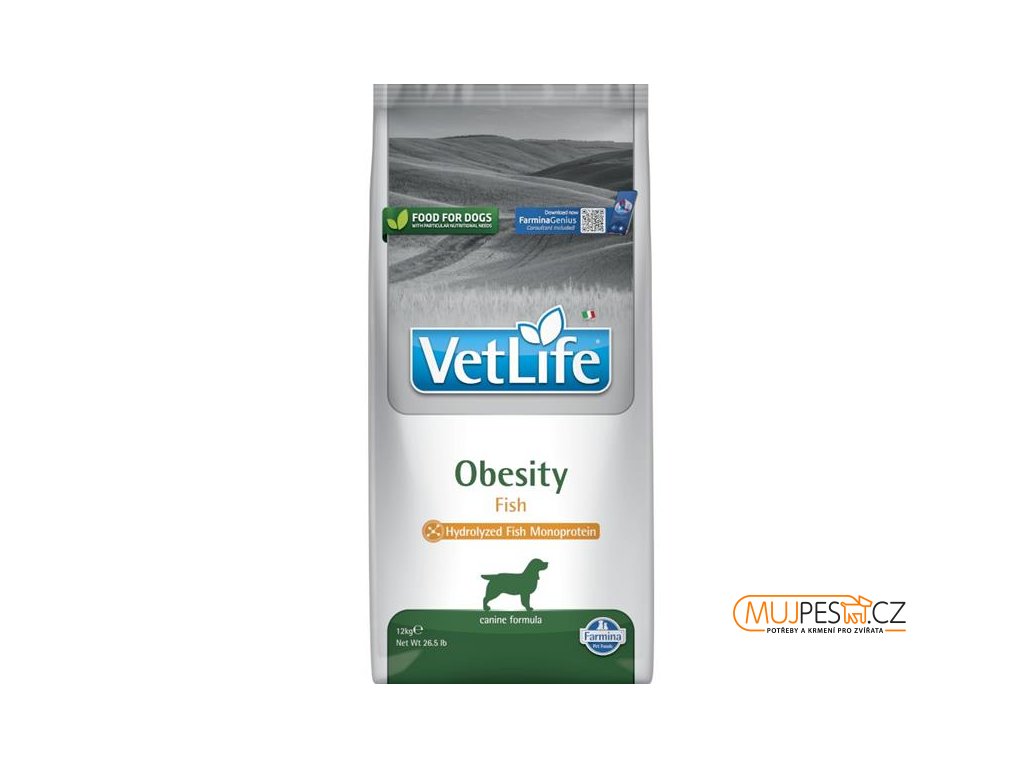 Farmina Vet Life Obesity Fish je kompletní suché dietetické krmivo pro dospělé psy vyvinuté speciálně za účelem snížení nadměrné tělesné hmotnosti. Granule jsou díky nízkému obsahu tuků a cukrů ideální pro psy trpící obezitou. Zdroji sacharidů v krmivu jsou špalda a oves, původní pěstované obilniny s nízkým glykemickým indexem, které umožňují postupné uvolňování energie během dne.