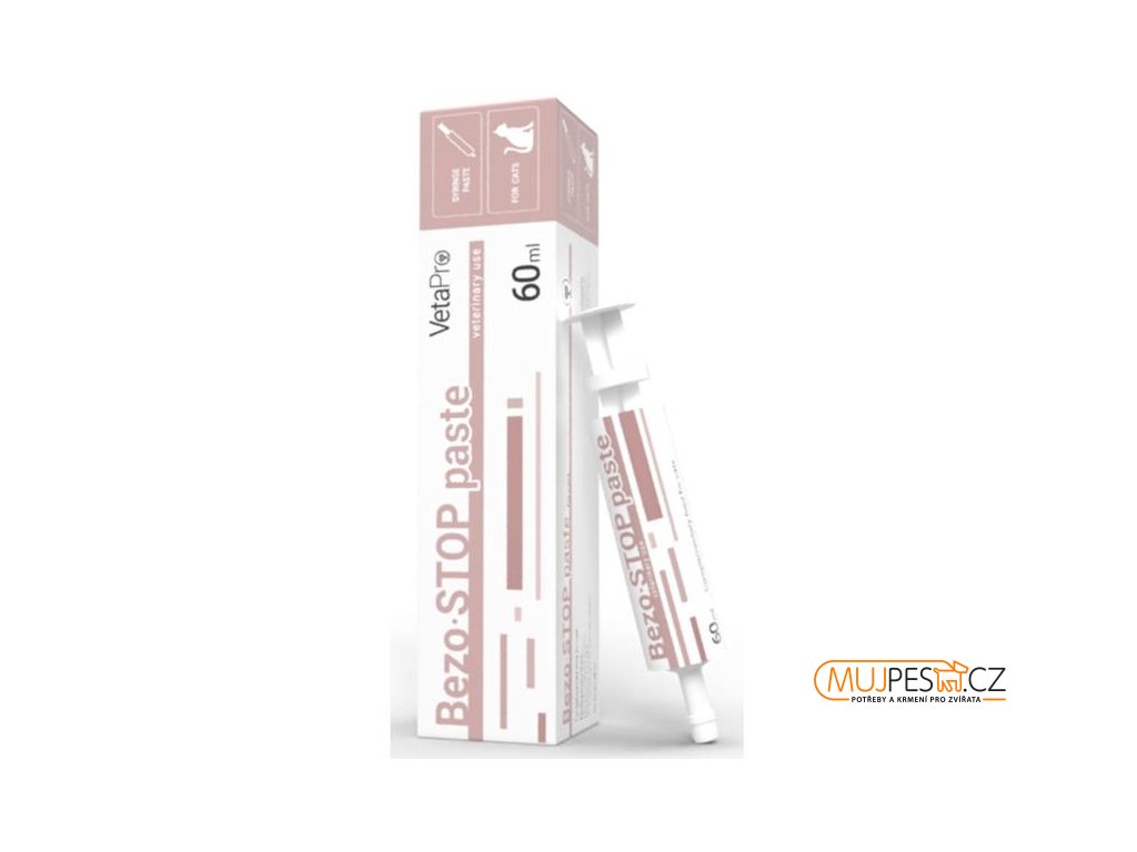 Bezo-Stop Paste je doplňkové krmivo ve stříkačce na bázi oleje určené k odstranění a prevenci tvorby trichobezoárů u koček. Pokrývá žaludek a trávicí (gastrointestinální) trakt olejovou vrstvou v místech, kde cizí tělesa mohou způsobit obstrukci. Preventivní použití se doporučuje u plemen koček s dlouhou srstí (perské) a u koček chovaných v interiéru bez přístupu k hrubým vláknům (trávě), které by vyvolávaly zvracení.