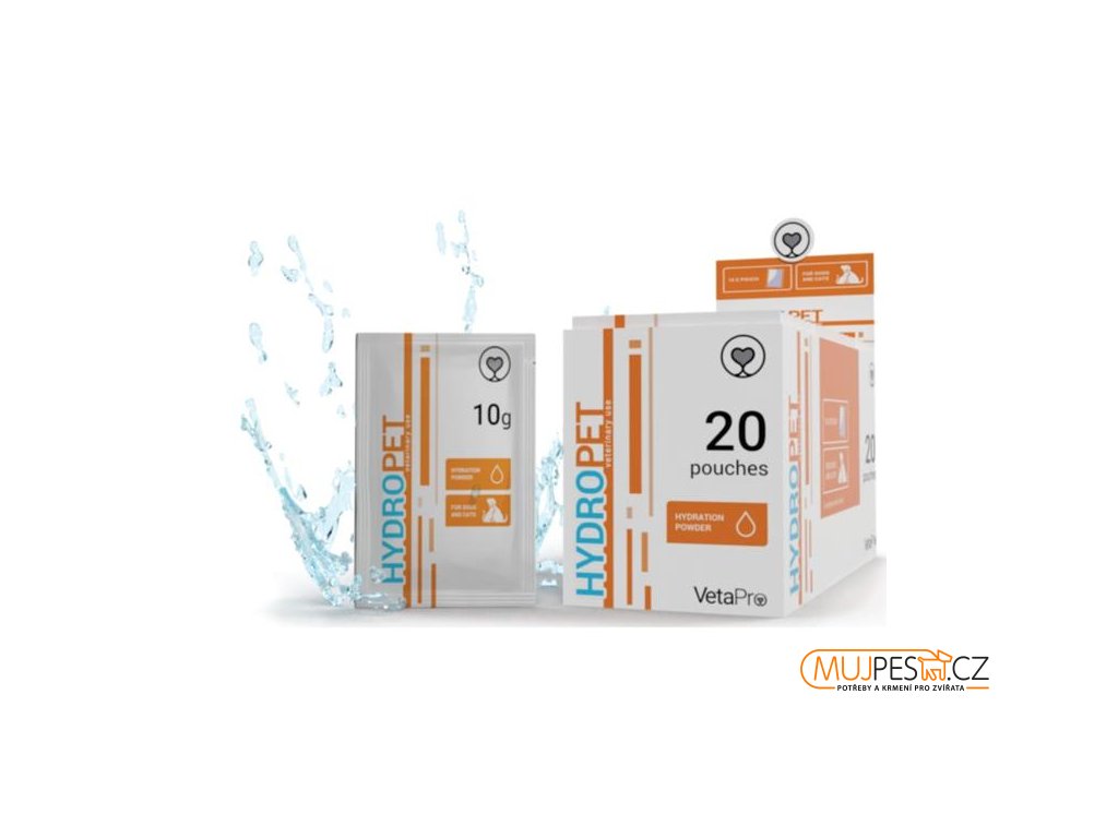 Hydropet je nutriční doplněk pro psy a kočky se ztrátou elektrolytů v důsledku zvracení a/nebo průjmu, po operaci, při mírné dehydrataci. Vyvinutý k náhradě ztracených tekutin a elektrolytů u dehydratovaných domácích zvířat a k obnovení normální rovnováhy elektrolytů.
