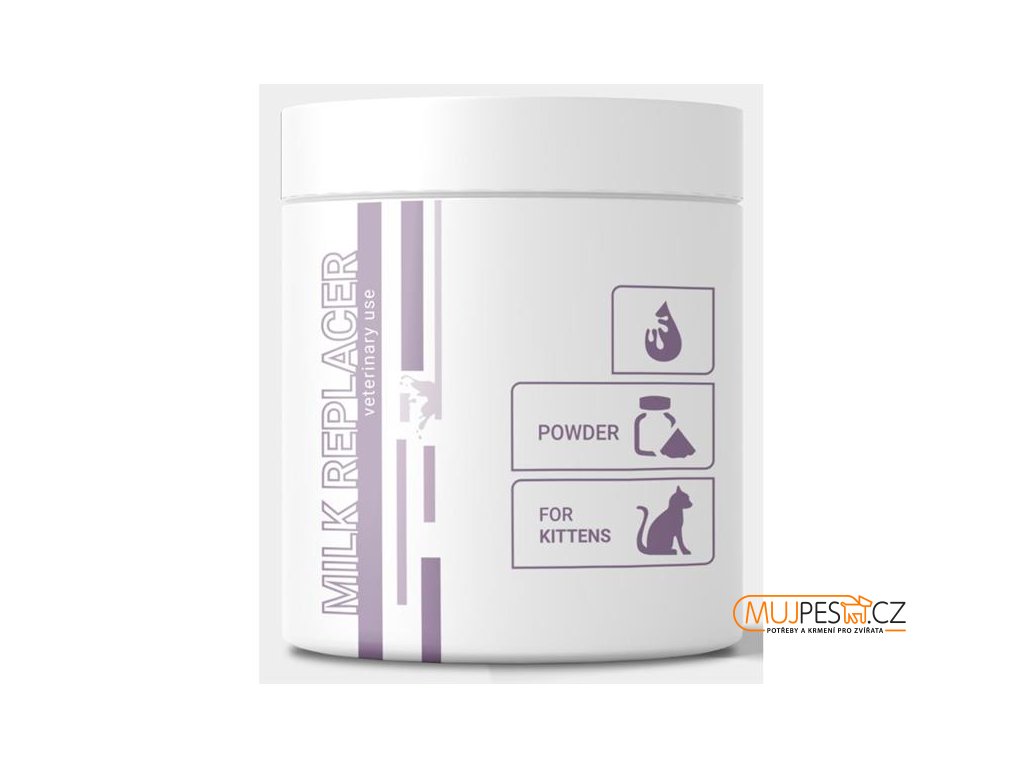 Milk Replacer je kompletní náhrada mléka speciálně přizpůsobená potřebám koťat. Nahrazuje přirozenou potravu od matky. Je velmi dobře snášena mladými organismy a může se podávat od prvních dnů života. Obsahuje základní živiny, zdravé bílkoviny, vitamíny a minerály pro podporu růstu koček. Je obohacená o taurin (esenciální aminokyselinu) potřebný pro správné fungování nervového systému a orgánů zraku.