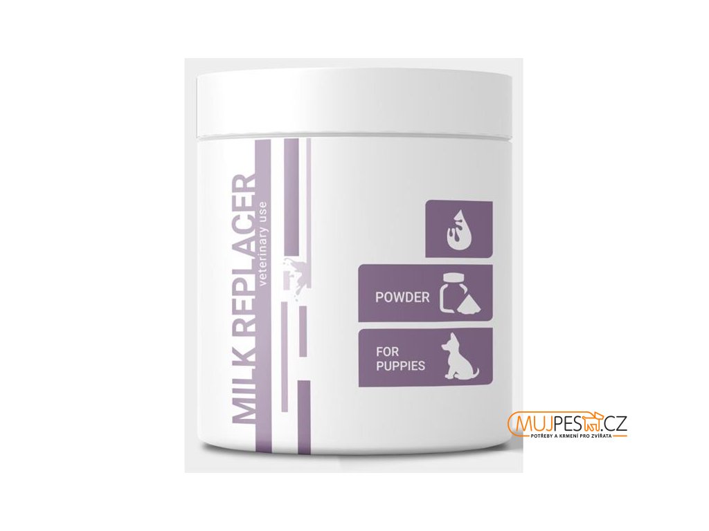 Milk Replacer je kompletní náhrada pro novorozená štěňata a doplňková strava pro březí a kojící feny. Štěňatům nahrazuje přirozenou potravu od matky. Je velmi dobře snášena mladými organismy a může se podávat od prvních dnů života. Obsahuje základní živiny, zdravé bílkoviny, vitamíny a minerály pro podporu růstu štěňat.