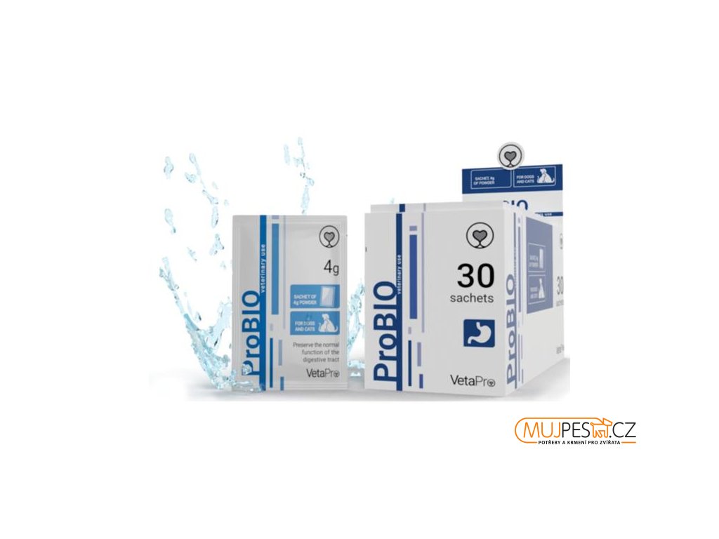 ProBio je nutriční doplněk pro psy a kočky obsahující přírodní probiotika pro udržení zdravé hladiny dobrých bakterií a pro zachování normální funkce trávicího traktu. Pomáhá psům a kočkám v zotavení po léčbě antibiotiky, po operaci, očkování nebo odčervení a je vhodné také pro štěňata a koťata s měkkou stolicí.