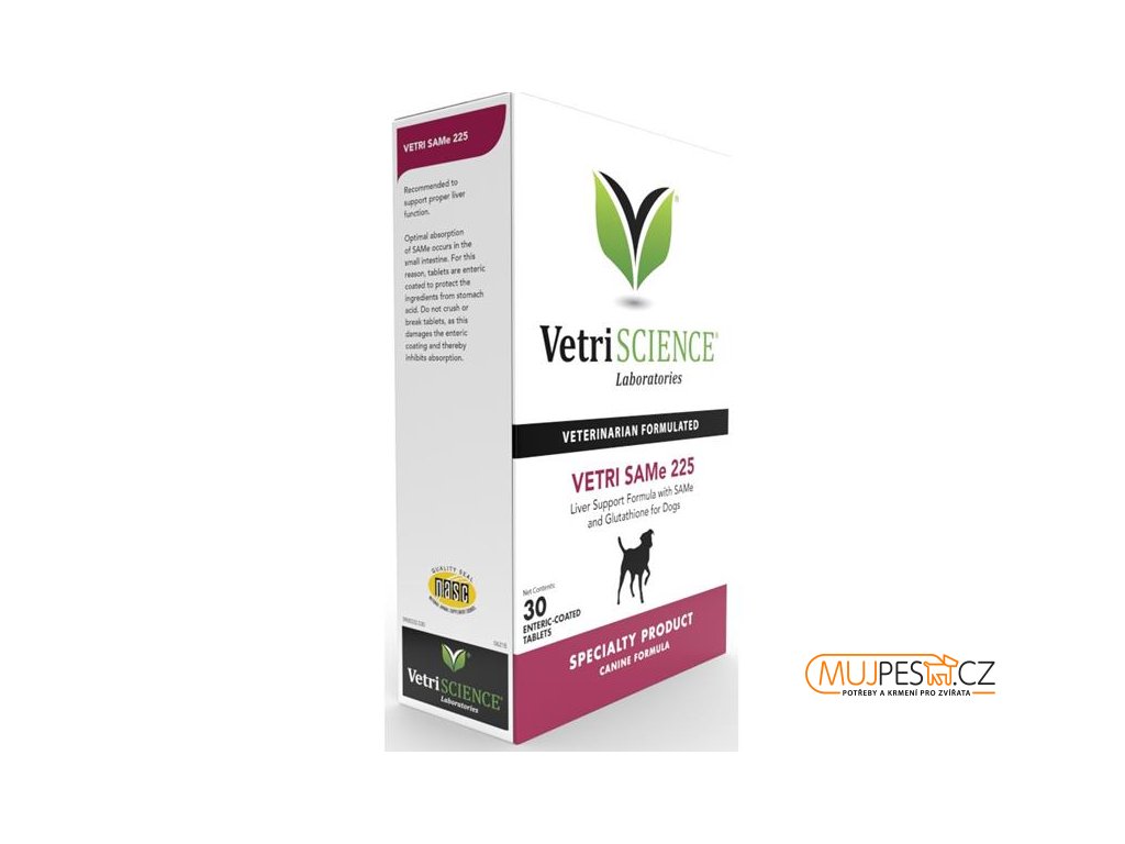 Vetri SAMe 90 je veterinárními lékaři doporučovaný potravní doplněk pro psy a kočky, který pomáhá udržovat optimální zdraví a funkci jater pomocí složek, které mohou být efektivně vstřebávány a využívány organismem.