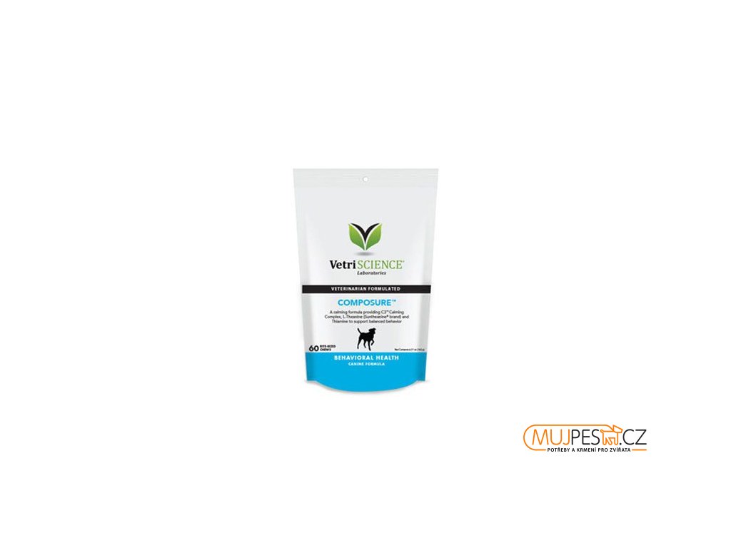 Thiamin pomáhá zvládat stres a snižuje podrážděnost. Bylo prokázáno, že Thiamin (vitamin B1) prostřednictvím centrálního nervového systému napomáhá uklidnit úzkosti u zvířat. Nedostatek thiaminu může způsobit mentální zmatek, svalovou slabost, svalové křeče, nervozitu a ztrátu hmotnosti a chuti k jídlu v průběhu stresu.Composure™ neobsahuje žádné rostlinné složky (Kava ??Kava??, kozlík lékařský, třezalka tečkovaná, atd.), nebo L-tryptofan. Jeho složky nezpůsobují závislost, ospalost nebo zhoršené motorické dovednosti.